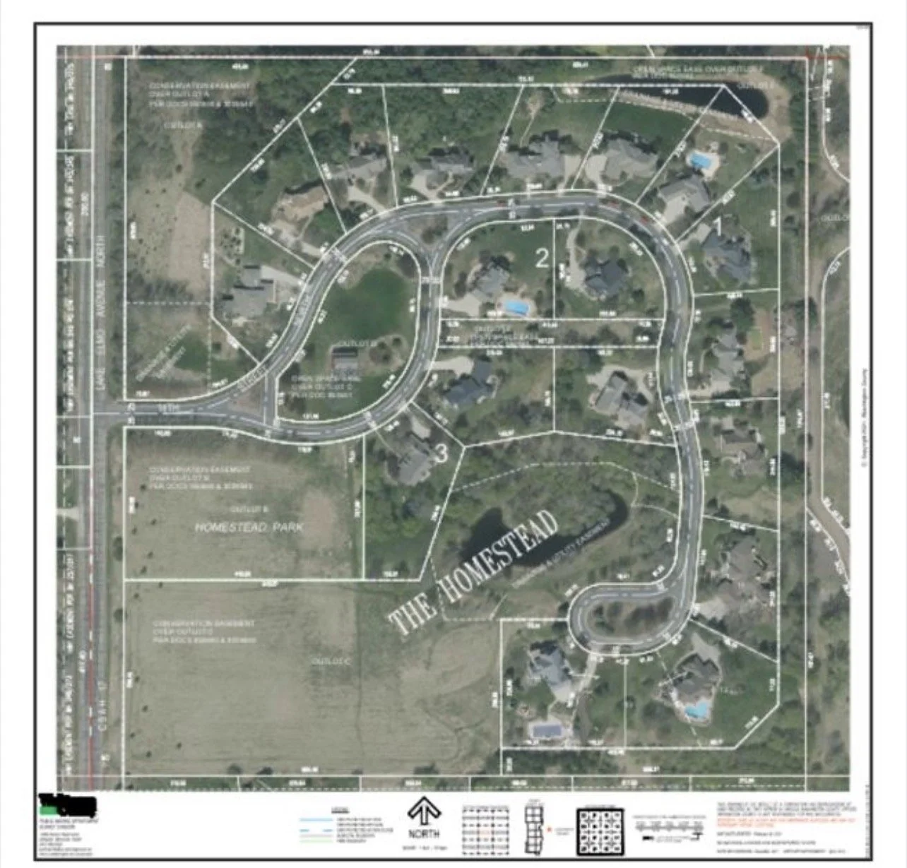 Homestead features 18 unique, custom built homes developed by DeWitt Homes in 1999. Lots sizes of approximately one acre with mature trees and landscapes complement the barn original to the St. Croix Valley farm that once included cows and fields of crops.