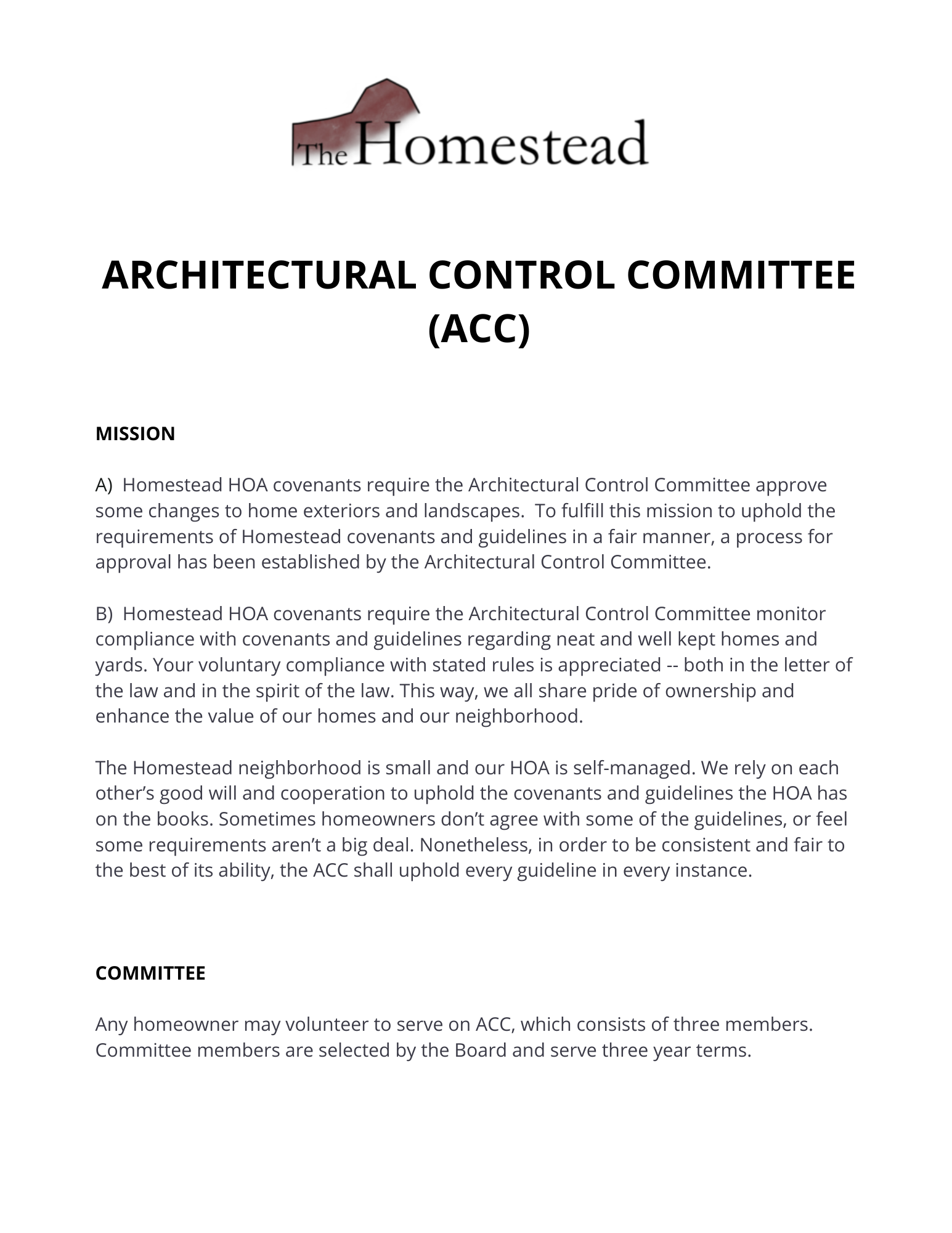 ACC Members 2026 Maruva SedlacekJennifer BartelsonJody Cunningham Architectural Control Committee Processes Click to access the ACC Application Form ACC FORM
